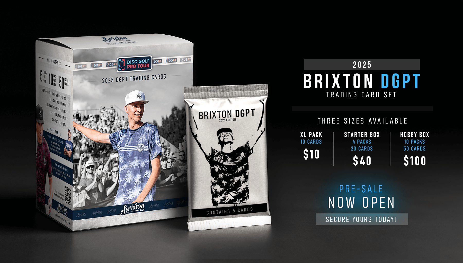The 2025 Brixton DGPT trading card set marks the beginning of a new era. For the first time ever, the historic DGPT card set and the record-breaking Brixton line come together to create the ultimate disc golf card-collecting experience.